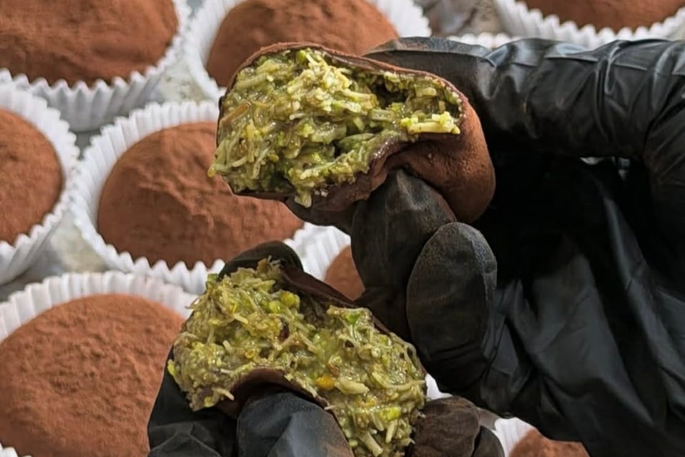 @Ryripapa返信先:@moriko1105 ドバイクッキーという物らしいです。 中身はチョコレートとマシュマロとピスタチオ以外はよくわかりません🫣